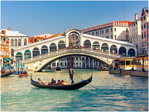 | Today we visit one of the most romantic cities of the world – Venice. We board an exclusive boat and ride the length of the Grand canal to reach St. Marks Square. Upon arrival, we watch a Murano glass making demonstration. We then visit St. Mark's Basilica to admire its breathtaking art in mosaic. We explore Venice along winding roads and beautiful bridges, which join the small islands, besides old buildings that seem as if they are floating in the water. We reach Rialto Bridge, the longest marble bridge of its time, and shop for souvenirs and Venetian masks. | ||